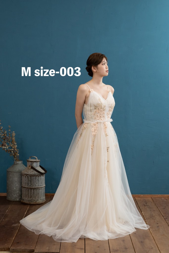 S・M・Lのサイズ展開がございますが、多くのドレスは後ろで調整可能なリボンや編み上げタイプとなっており、幅広い体型の方にご着用いただけます。